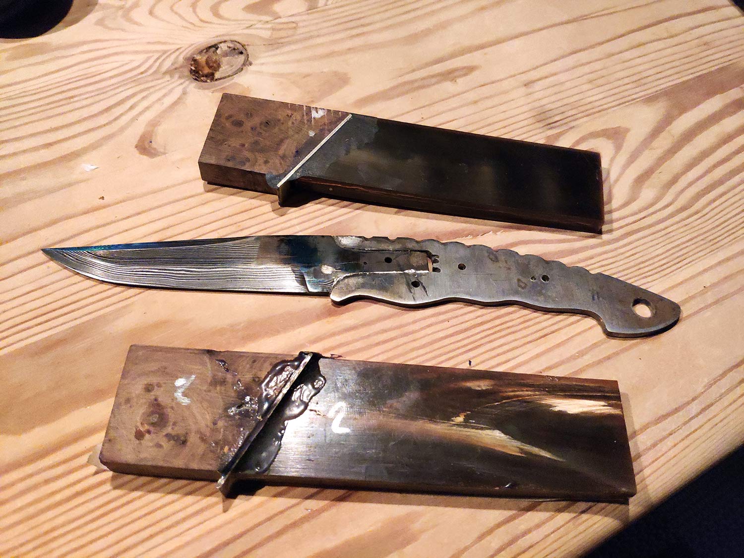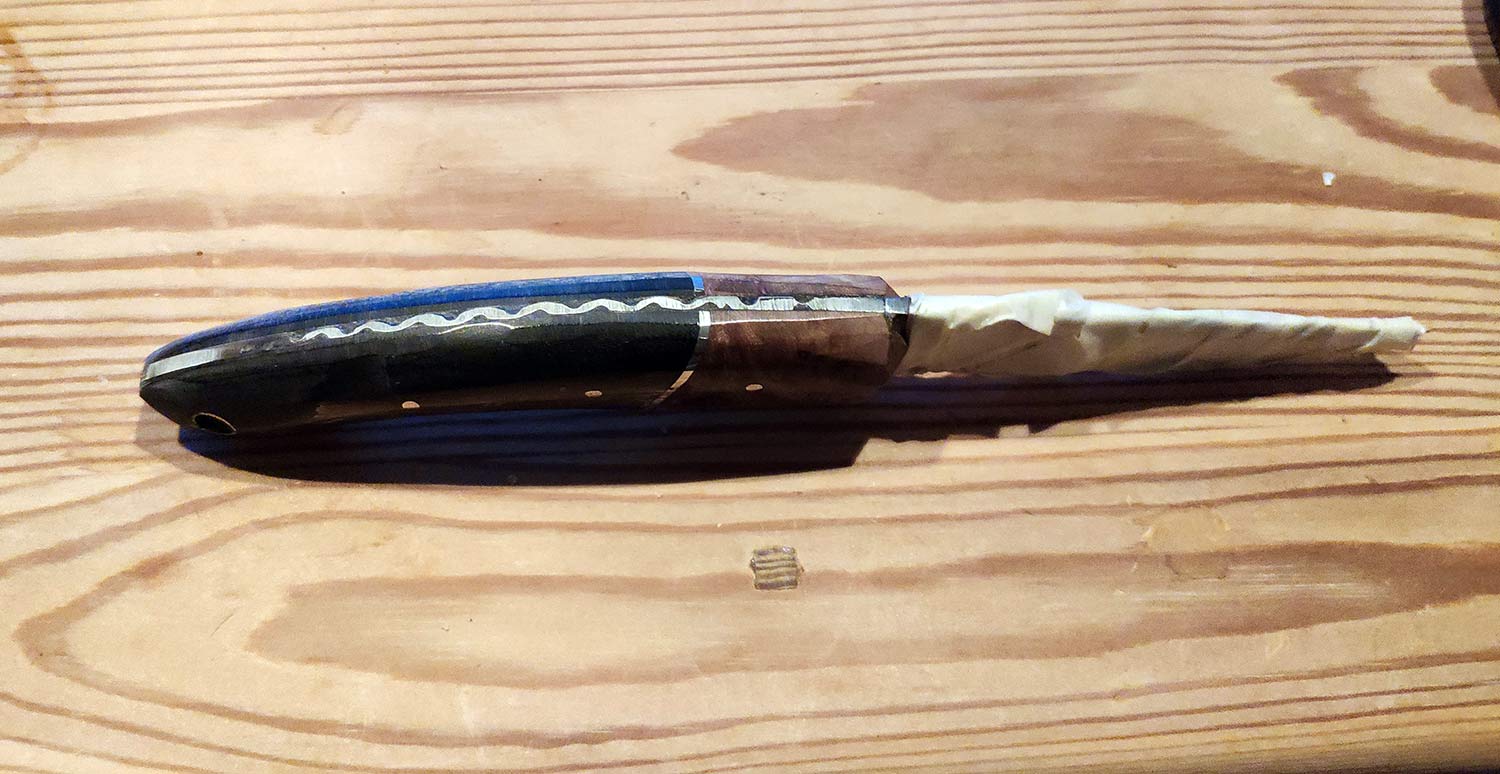 Klingen er oprindeligt med skjult tange. Men det design jeg havde i hovedet, egnede sig bedst til en fuldtange kniv.